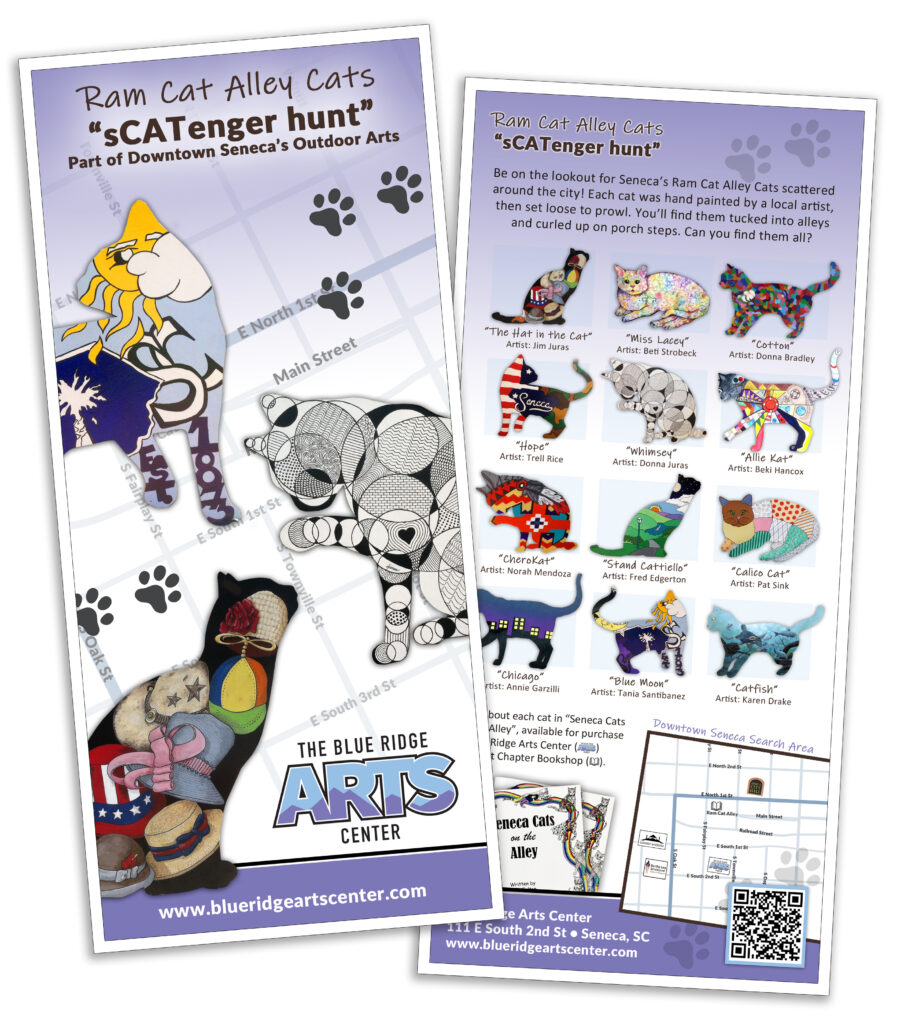 Be on the lookout for Seneca’s Ram Cat Alley Cats scattered around the city! Each steel cat was laser cut by Hamilton Career Center Welding Students, then hand painted by local artists and set loose to prowl. You’ll find them tucked into alleys and curled up on porch steps. Can you find them all?