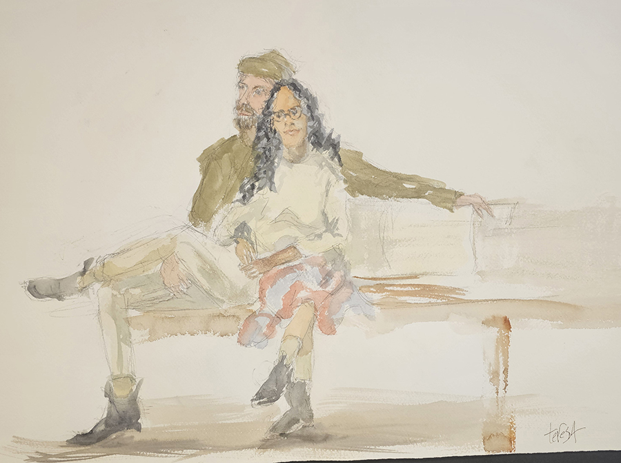 In life drawing sessions, artists typically work from a series of poses that vary in length, from quick gesture studies to longer poses that allow for more developed drawings. Each artist interprets the model in their own way, using different materials and approaches. The works in the slideshow below reflect that diversity – capturing moments of movement, rest, structure, and character through careful observation and personal expression.