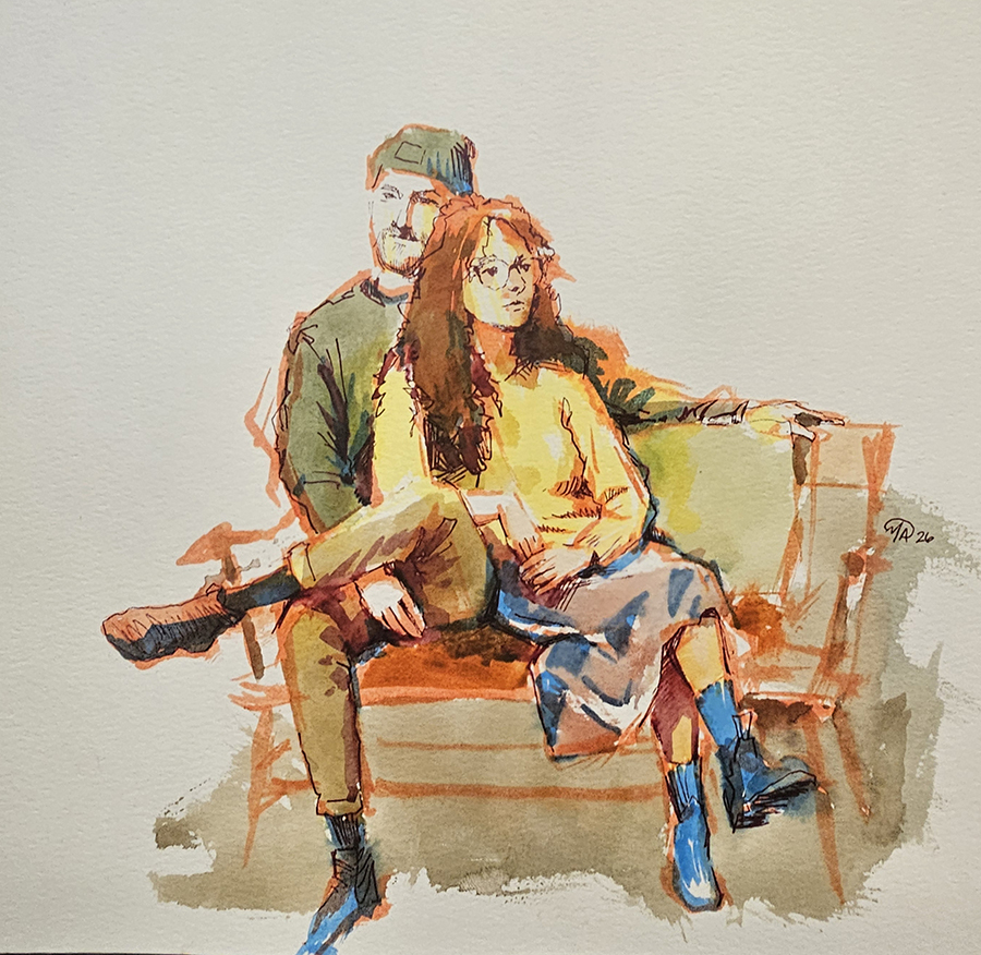 In life drawing sessions, artists typically work from a series of poses that vary in length, from quick gesture studies to longer poses that allow for more developed drawings. Each artist interprets the model in their own way, using different materials and approaches. The works in the slideshow below reflect that diversity – capturing moments of movement, rest, structure, and character through careful observation and personal expression.