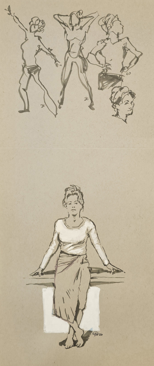 In life drawing sessions, artists typically work from a series of poses that vary in length, from quick gesture studies to longer poses that allow for more developed drawings. Each artist interprets the model in their own way, using different materials and approaches. The works in the slideshow below reflect that diversity – capturing moments of movement, rest, structure, and character through careful observation and personal expression.